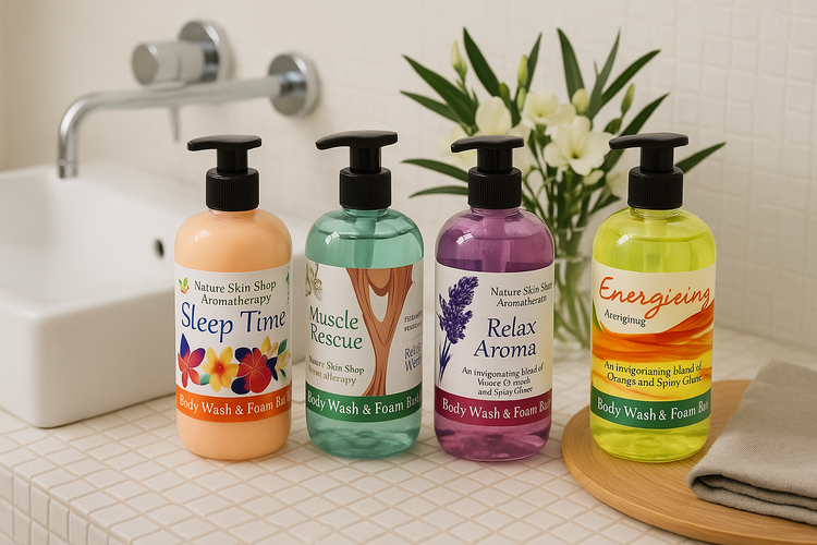 The difference is in the ingredients and the intention. Most drugstore washes use synthetic fragrances for scent and harsh sulfate detergents for cleansing. We use only pure, high-quality essential oils for a true aromatherapeutic benefit and gentle, plant-based cleansers that respect your skin's health.